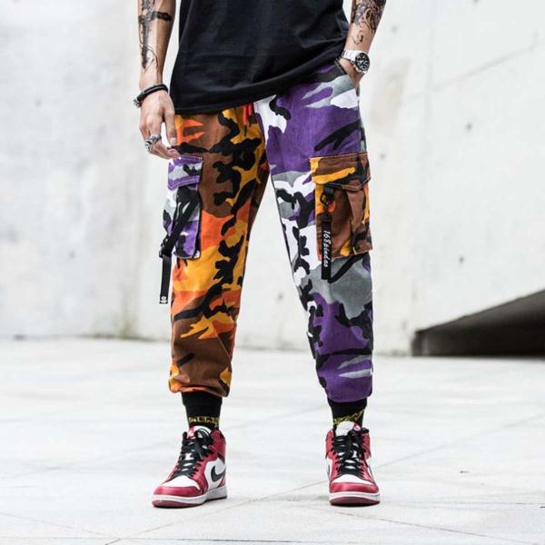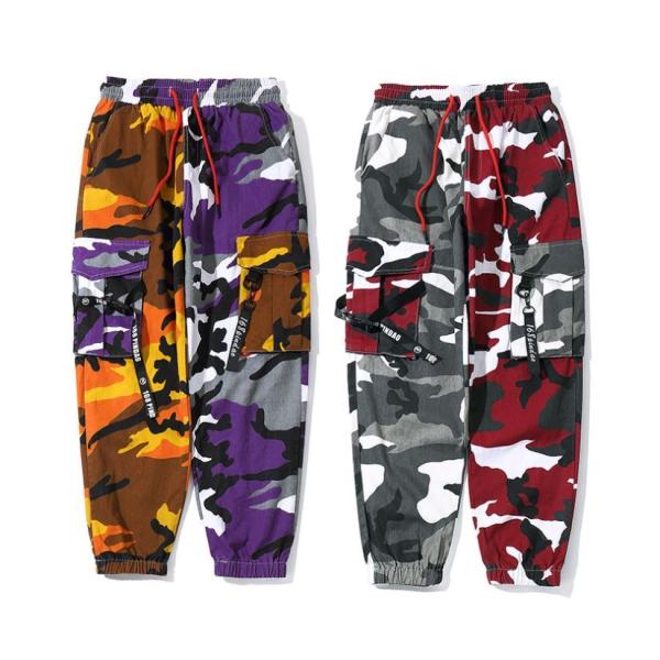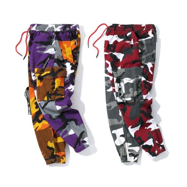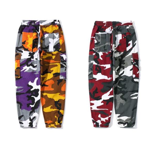 明るい色の迷彩柄。丈は、8分、足首上。派手なソックスとハイカットのスニーカーを合わせて良し。足首、もう少し丈が長ければ、他の合わせも出来た。