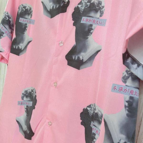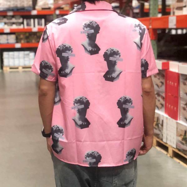 -絶妙なピンクカラーとメッセージがインパクト大のシャツ