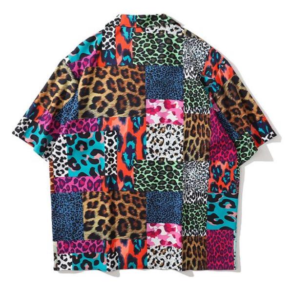 #ヒョウ、#レオパード、#アニマル柄#パッチワーク、#ストリート系、#ストリートカジュアル#半そで、#パネル柄